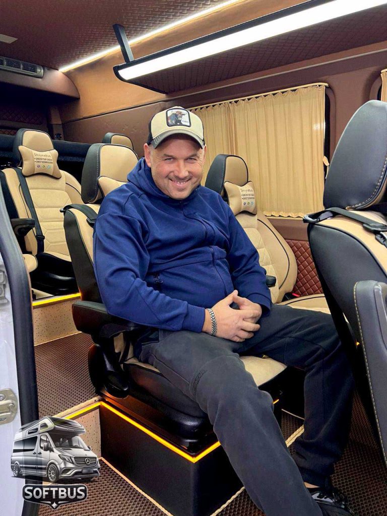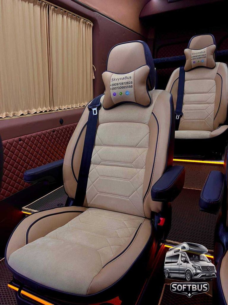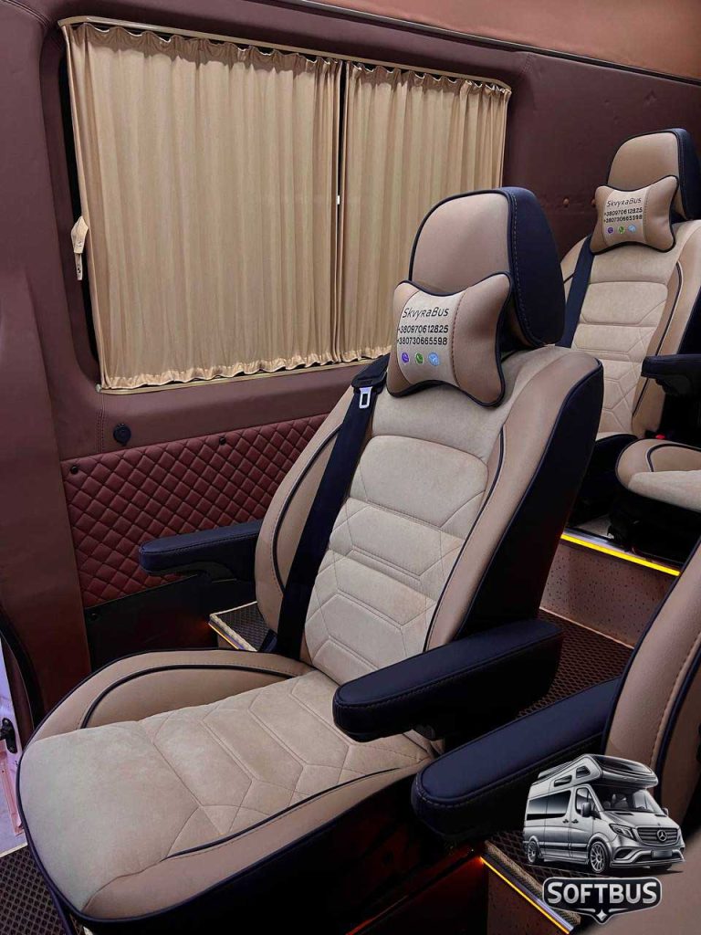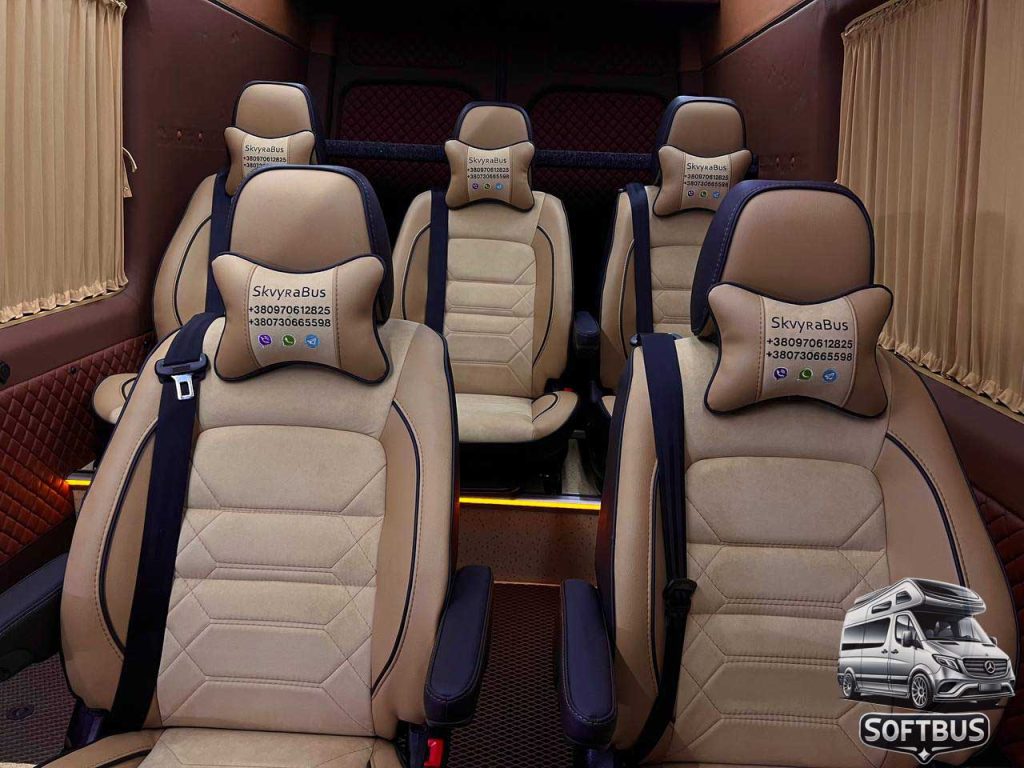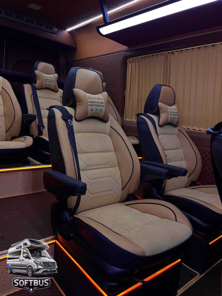 Цей Mercedes Sprinter поєднує функціональність, стиль та преміальний комфорт, забезпечуючи незабутній досвід для пасажирів. Компанія Softbus пропонує найкращі рішення для переобладнання вашого транспорту.