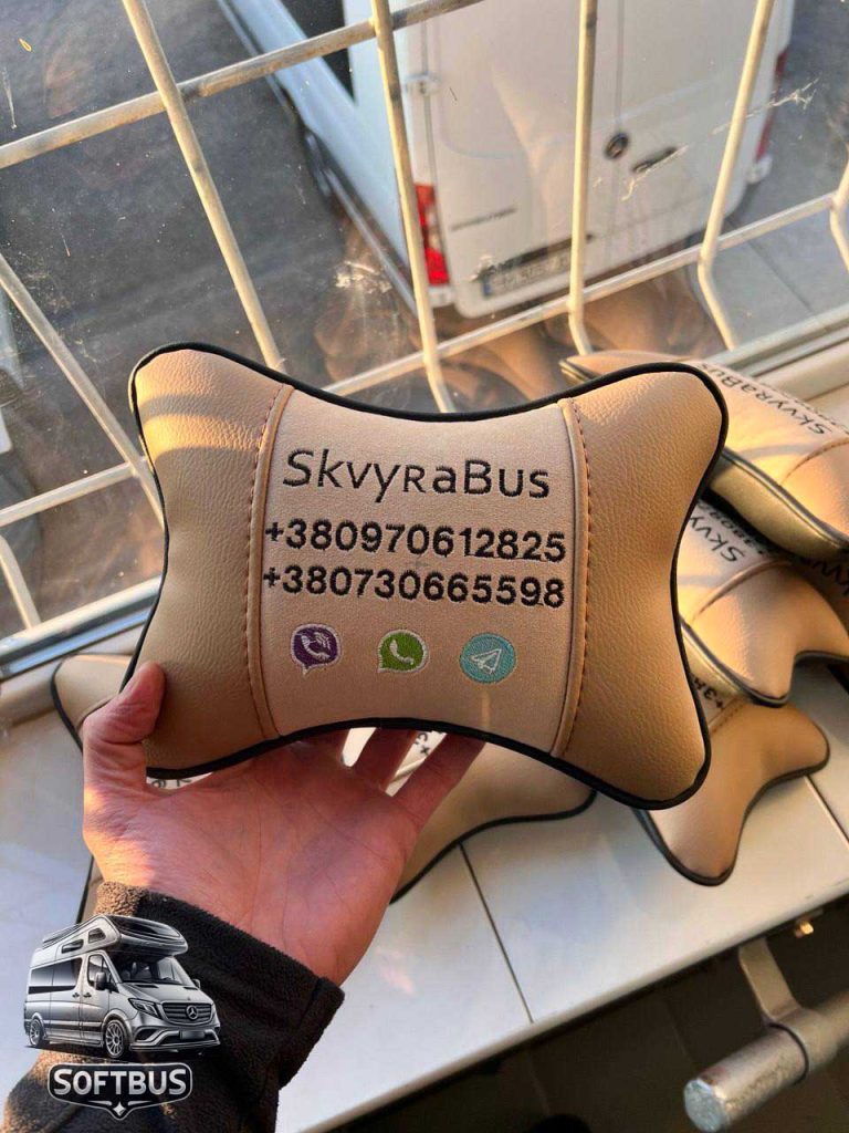 - Подушки для підголівників із брендовим логотипом та контактною інформацією для підвищення зручності пасажирів.