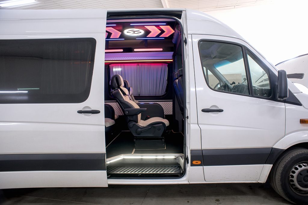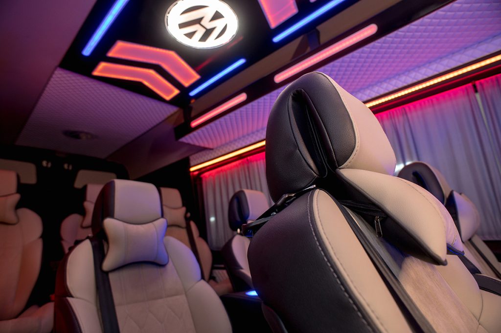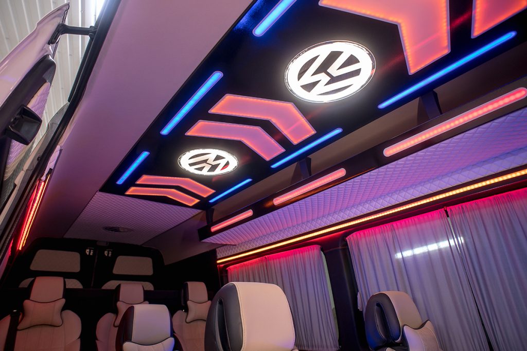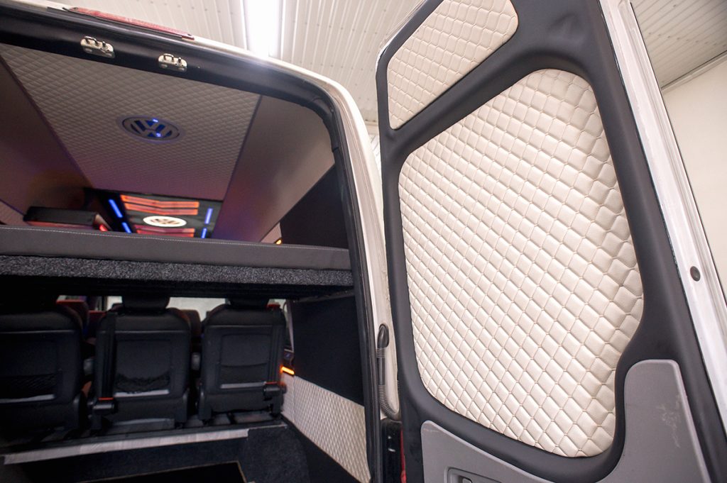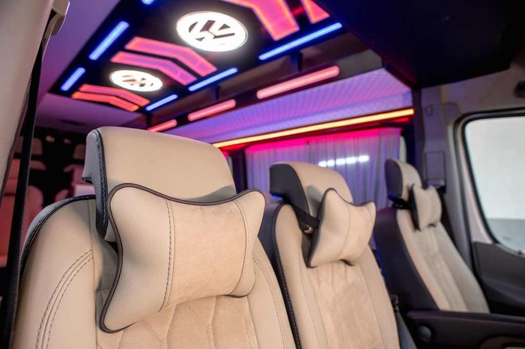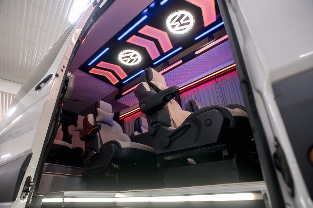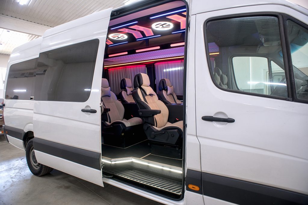 Мікроавтобус Volkswagen Crafter переобладнано для максимально комфортних пасажирських перевезень з урахуванням сучасних стандартів якості й стилю. Усі роботи виконано компанією Softbus на власних виробничих потужностях.