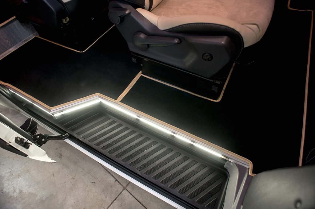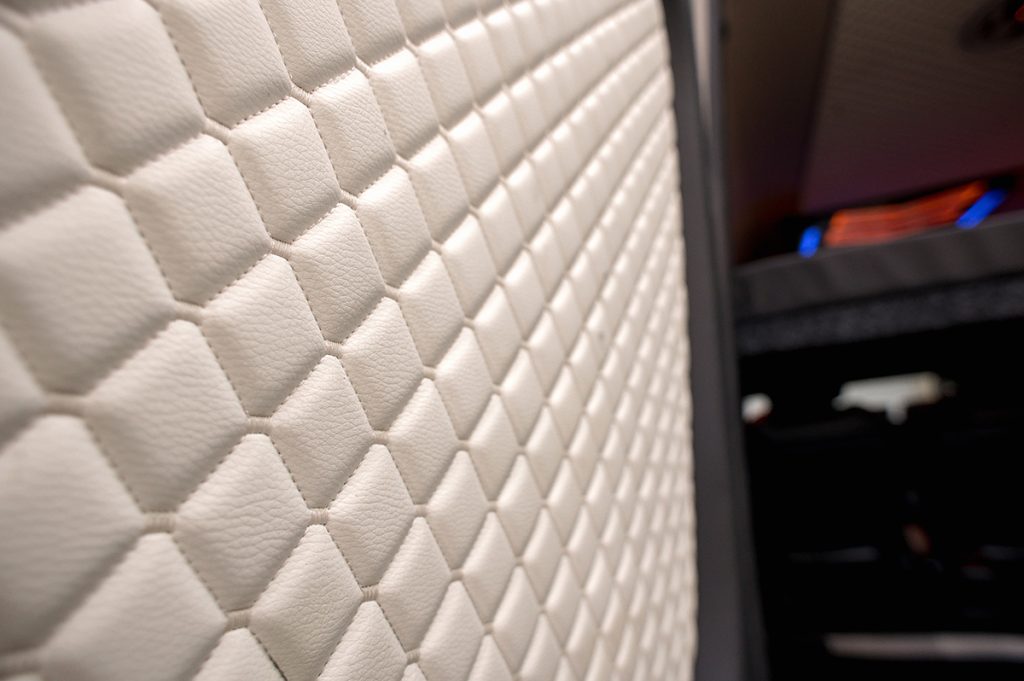 • Панелі салону під вікнами виготовлені на замовлення та покриті шкірозамінником.