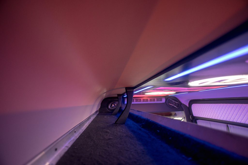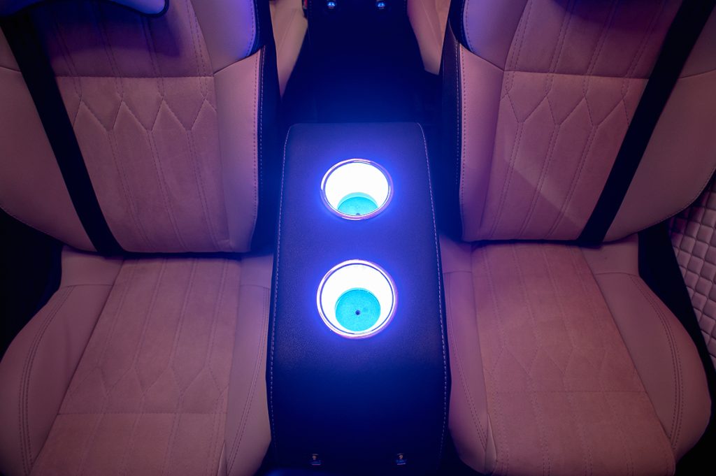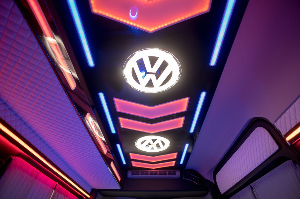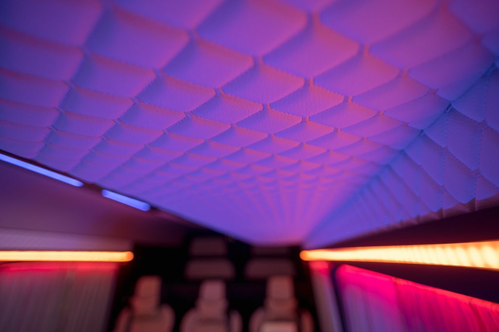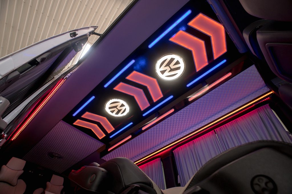 • Стеля салону оздоблена дизайнерськими елементами, логотипом і LED-підсвіткою.